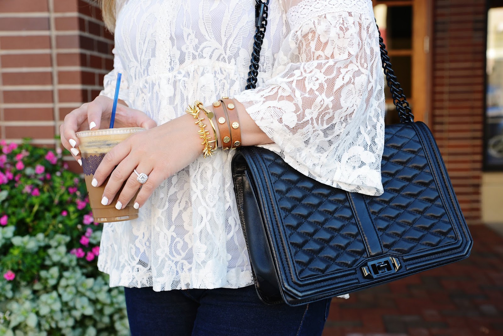 I also got a new distressed denim jacket while I was there. I've been looking for a new denim jacket for ages but never found one I loved until Apricot Lane! This white lace top is everything. It's from a new boutique I found online, Miss Match. I love it! I have this white basic tank to underneath - must have tank. I have several in white and black and wear them under everything.